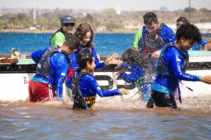 Desde 2017 utilizando o esporte como ferramenta de transformação social, o projeto passou a ser executado oficialmente por meio de incentivo fiscal, ampliando sua atuação de forma significativa. Agora, 308 pessoas serão beneficiadas gratuitamente, ao longo de um ano, com aulas de canoa havaiana e stand up paddle, combinadas com os princípios da Psicologia Junguiana, promovendo saúde física, mental e emocional no contraturno escolar.