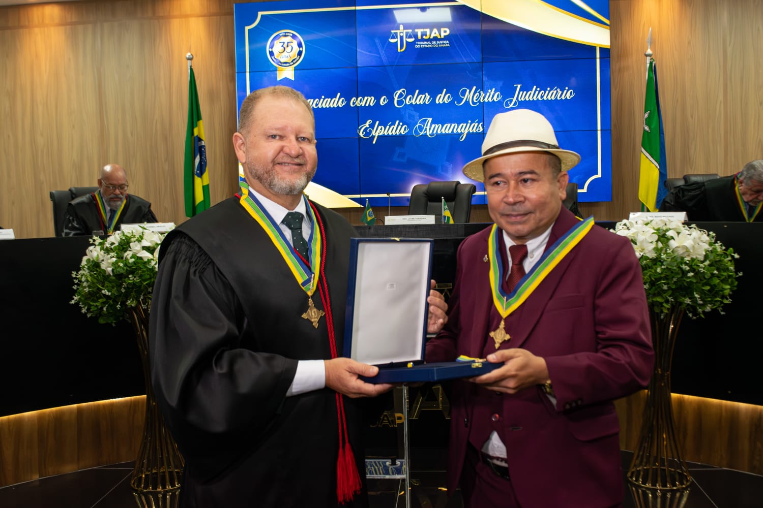 Na manhã desta quarta-feira, (18/03) o pleno do Tribunal de Justiça do Amapá, reuniu em sessão solene para, a entrega do “Colar do Mérito Judiciário”, o título é a maior comenda que o poder judiciário amapaense, entrega a personalidades que realmente tenham méritos, e número limitadíssimo a recebem. O Representante da Assembleia Legislativa do Amapá em Brasília Elpidio Amanajas, foi condecorado pelo serviço que presta a mais de 30 anos ajudando a encaminhar pacientes de câncer do amapá para tratamento no Hospital de Amor em Barretos e Porto Velho, e ainda pela atuação da Obra social Fazenda da esperança que, a 42 anos no brasil trata de pessoas com vícios das drogas. O presidente do Tribunal de Justiça do Amapá Desembargador Jaime Ferreira, no ato da solenidade disse que Elpidio é um marco na solidariedade aos que sofrem com o câncer e com o vício das drogas “Elpidio Amanajas teve papel embrionário para a implantação de uma unidade do Hospital de Amor em Macapá, e da Fazenda da esperança, muito solidário aos que mais precisam, e queremos fazer aqui o reconhecimento a ele “disse o desembargador. A indicação para a homenagem foi do desembargador Mario Mazurek que obteve aprovação no plenário do tjap por unanimidade. “Estou muito feliz pelo reconhecimento, e quero socializar com os pacientes oncológicos e acolhidos da fazenda da esperança, de modo especial com a assembleia legislativa do amapá, que sempre nos proporcionou condições amplas de trabalho, para que pudéssemos chegar ao pleno sucesso nessas ações” ressaltou Elpidio, que também faz frente a outros movimentos de solidariedade como a Legião da Boa Vontade (LBV) e do programa Calha Norte. Formado em radiojornalismo e bacharel em ciência política, também faz parte da maçonaria brasileira, e do clube da aeronáutica de Brasília. O evento foi prestigiado por magistrados, membros do ministério publico amapaense, presidência do OAB/AP, secretários de estado, membros da maçonaria, e expressiva cobertura por emissoras de rádio, televisão, sites e jornais de circulação local.